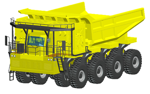 采用合能電驅動系統(tǒng)的新型節(jié)能多軸重型礦用自卸車,已經載重240噸進行了2000公里的路面各項試驗,在內蒙古露天礦克服當地零下四十度的惡劣天氣條件,每天分三班正式運行。該車采用4軸線、8個懸架、16×16全輪驅動、全輪轉向等結構形式,綜合運用了雙發(fā)動機聯合動力、多車輪獨立電驅動技術、大行程液壓懸架、擺動軸技術、箱型車架、液壓制動和轉向、遠程監(jiān)控自動診斷等先進技術,提高了車輛道路適應性,降低了道路維護頻次和成本,延長了輪胎壽命,同時具有轉彎半徑小、機動性能好、供貨周期短、采購及維護成本低等優(yōu)點,別適應于大中型露天礦山開采運輸和大型工程施工。